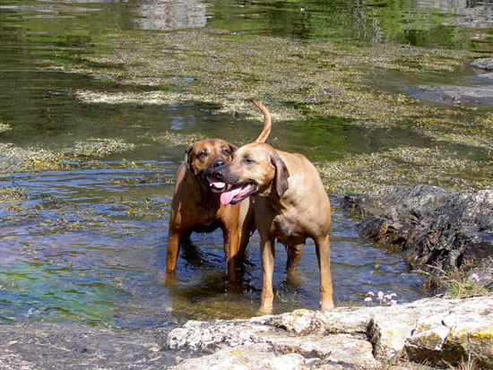 Sacha og Lucy avkjøler seg i varmen - Juni 07